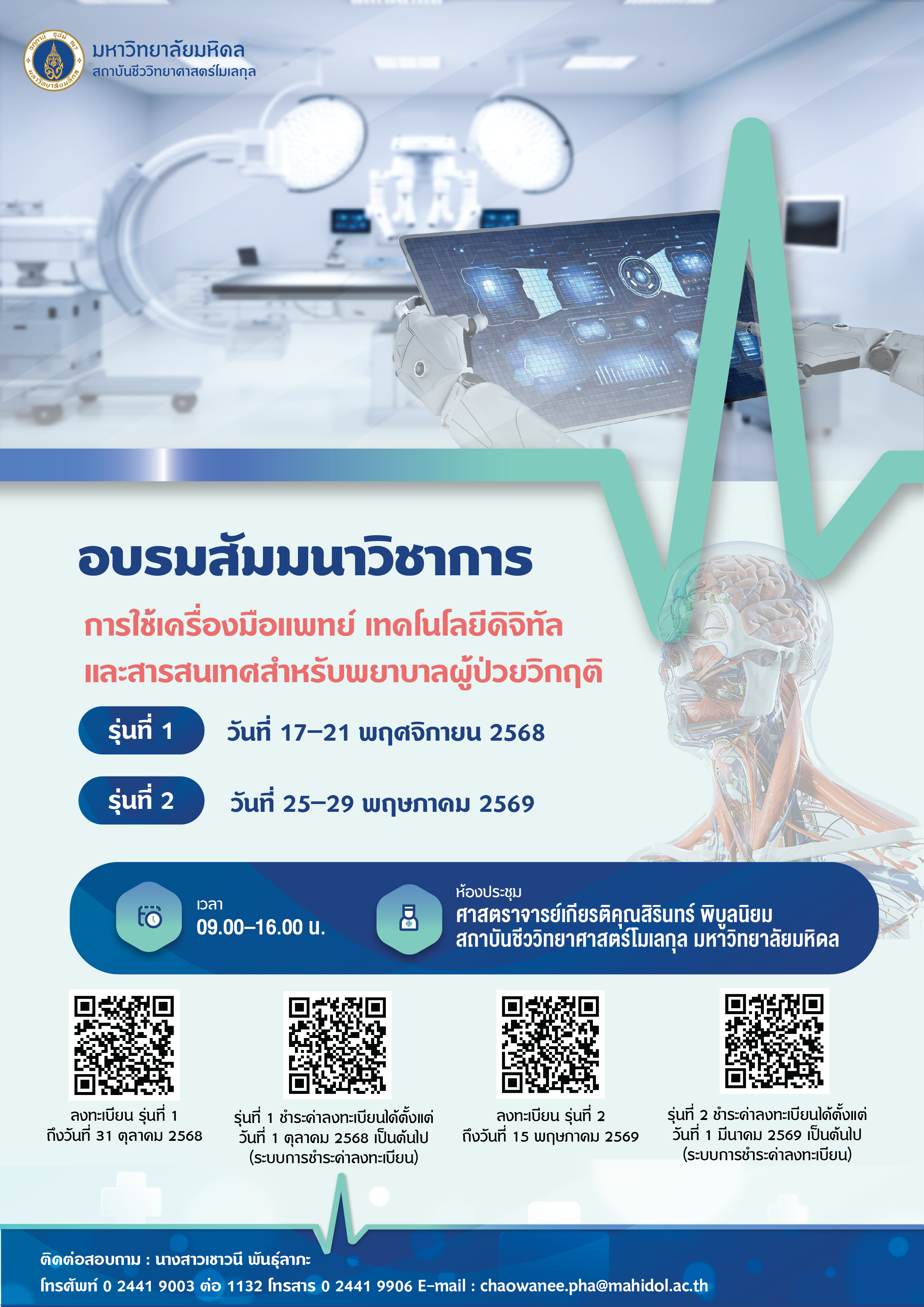 Contact Information: 📧 chaowanee.pha@mahidol.ac.th or Tel. +66 2441-9003 ext. 1132