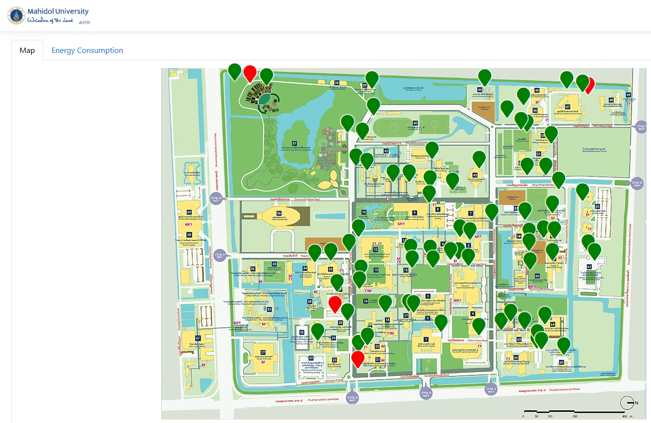 มหาวิทยาลัยมหิดลได้ดำเนินการติดตั้งระบบอ่านหน่วยมิเตอร์ไฟฟ้าอัตโนมัติ (Automatic Meter Reading: AMR) รวมทั้งสิ้น 85 เครื่อง