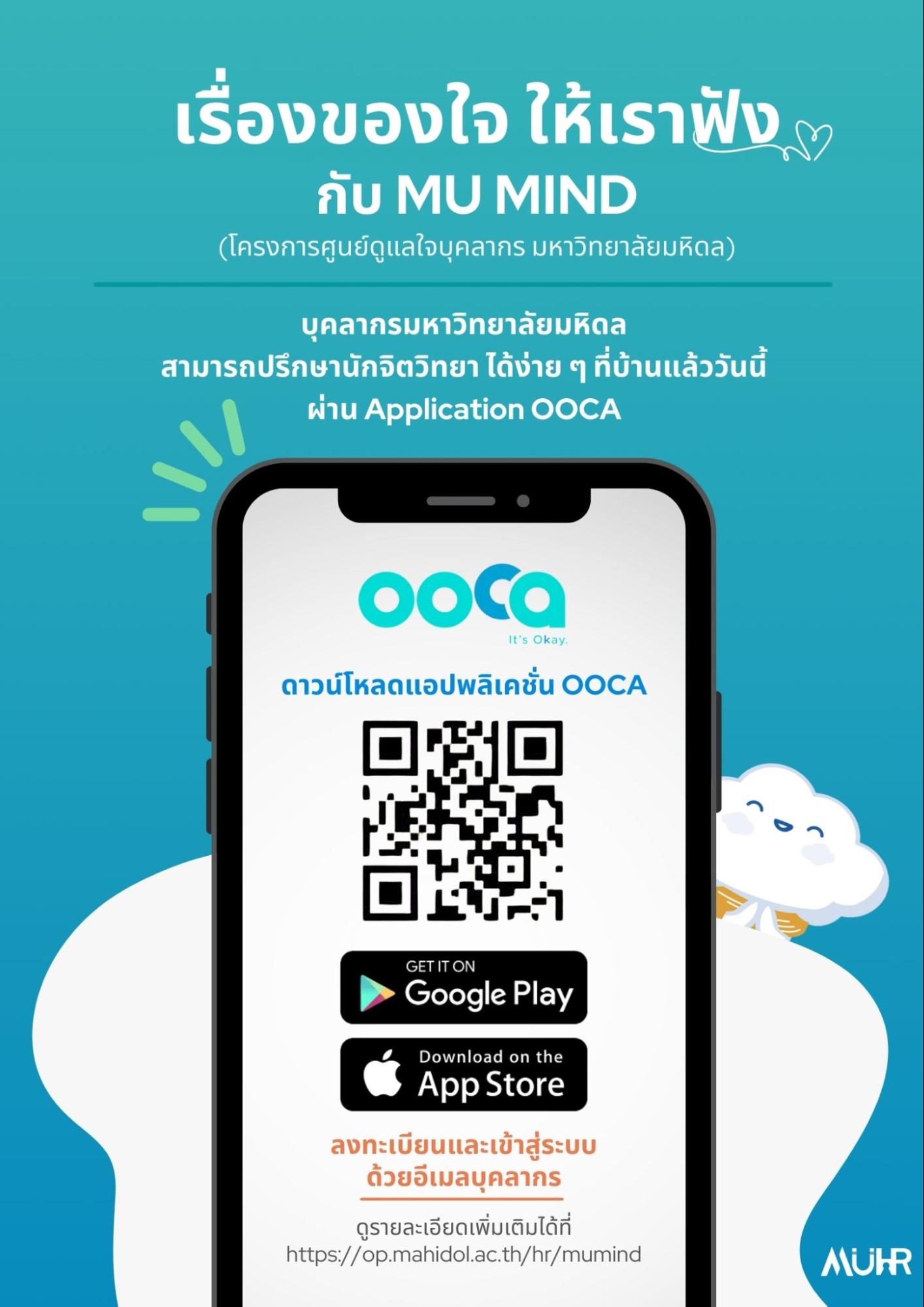 Mahidol University has introduced two key initiatives to support mental well-being within its community. The first, the Personnel Mindfulness Center Project (MU MIND) , promotes staff mental health through an online platform accessible via the “OOCA” application, offering counseling and support related to burnout, stress management, workplace conflict, and general mental health.