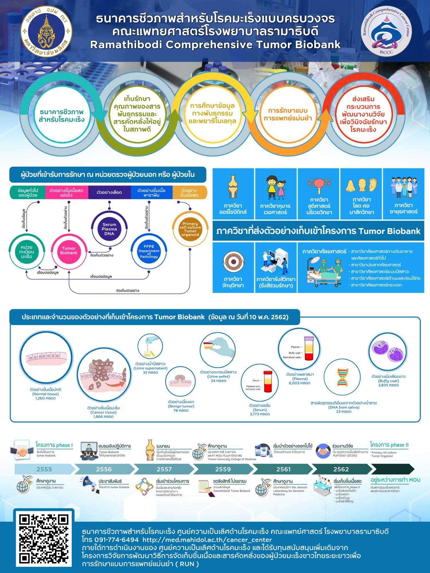 The Faculty of Medicine, Ramathibodi Hospital, Mahidol University has established the Ramathibodi Comprehensive Tumor Biobank under the Cancer Center of Excellence, in collaboration with the Translational Medicine Group and the Health Science Research Office. The biobank serves as a systematic repository for clinical samples and biological data from cancer patients to support in-depth, multidisciplinary research at the molecular level. By providing a reliable source of high-quality clinical samples, it facilitates multi-institutional collaboration, fosters innovation in cancer diagnostics and treatment, and advances the development of precision medicine. Ultimately, the initiative aims to reduce reliance on foreign technology, lessen the nation’s economic burden, enhance treatment success rates, and improve the quality of life for both current and future cancer patients.