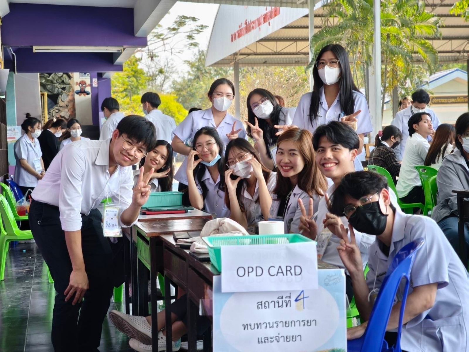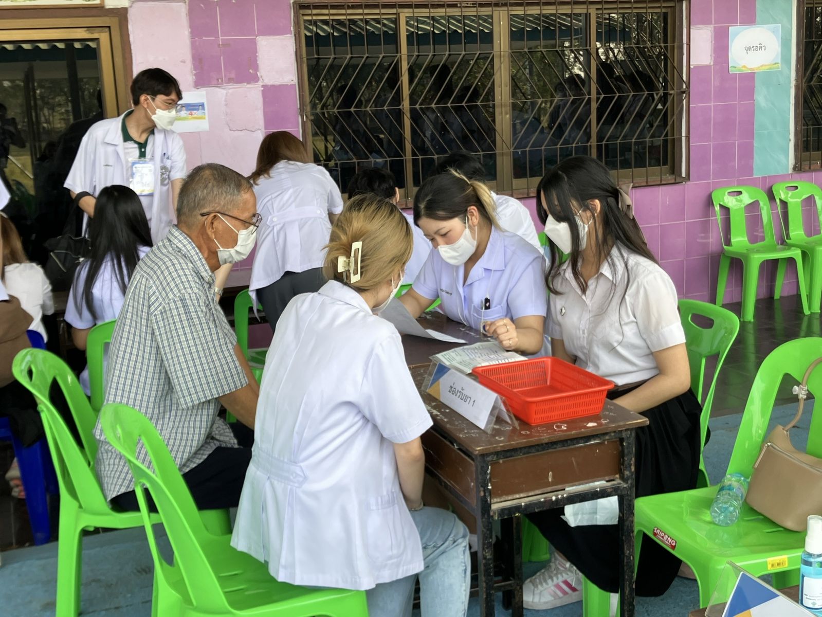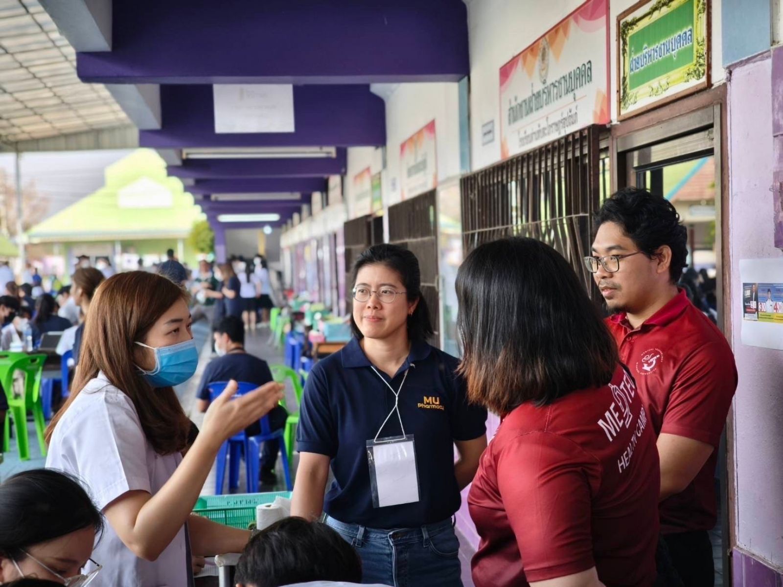 Furthermore, on February 1–2, 2025, the Faculty of Pharmacy Student Club, Mahidol University, participated in the 12th “Mahidol Joins in Building Ties, Bringing Kindness to the Community” event at Dan Thap Tako Community and Dan Thap Tako Rat Upatham School, Chom Bueng District, Ratchaburi Province, alongside student clubs from the Faculties of Medicine Siriraj, Dentistry, Nursing, Physical Therapy, and Medical Technology. The Faculty of Pharmacy’s delegation, led by Assistant Professor Dr. Thanika Pathomwichaiwat, Deputy Dean for Student Affairs, and Assistant Professor Jennis Meenwattana, Deputy Dean for the Bachelor of Pharmacy Program (International Program), joined faculty members, students, and alumni in this community engagement activity. Under the guidance of Assistant Professor Suphatat Chumnumwat as the project advisor, the 12th Mahidol Camp aimed to provide practical learning experiences in basic pharmaceutical care, medication counseling, and community health services. The project emphasized the application of transformative learning and interdisciplinary collaboration, enabling health science students to work together in addressing community health issues through field visits and service activities. These efforts not only enhanced students’ professional knowledge, skills, attitudes, and teamwork but also allowed community members to access essential health services and improve their overall hygiene and well-being.