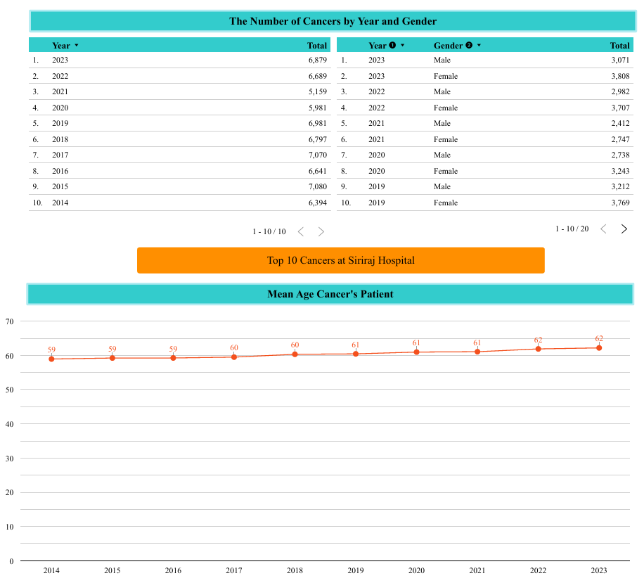 As a result, the Cancer Statistics Unit of the Siriraj Cancer Institute was established, and the first Tumor Registry was published in 1969, using terminology and classification based on the World Health Organization (WHO) – ICD Coding for Injuries and Causes of Death, 7th Edition. In 2010, the registry was made available online through the Siriraj Cancer Center’s website. From 1969 to 2008, cancer data were collected using a stand-alone system, which included D-Base and FoxPro platforms. In 2009, the system was upgraded to a web-based application, developed using ASP.NET (C#) and a SQL Server database, which continues to be used to the present day.