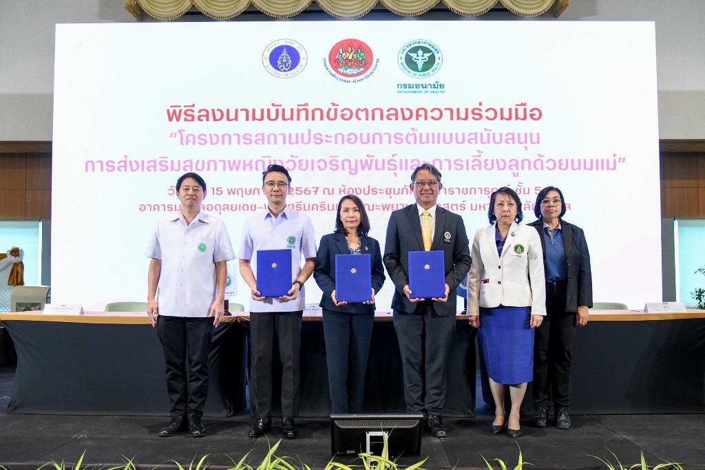 Mahidol University, in collaboration with the Department of Labor Protection and Welfare and the Department of Health, signed a Memorandum of Understanding (MOU) on May 15, 2024, to implement the Model Workplace Project to Support the Promotion of Women’s Health of Reproductive Age and Breastfeeding . Led by Assistant Professor Dr. Pornnapa Tangsuksan from the Faculty of Nursing, the project aims to develop evaluation tools and model workplaces that promote women’s health and breastfeeding, ensuring sustainable well-being for working-age women. The initiative establishes standards for health-supportive workplace environments and builds public trust in certified organizations. Three pilot workplaces participating in this project include Theppadungporn Coconut Co., Ltd., Western Digital Storage Technologies (Thailand) Co., Ltd., and Gamma Industries Co., Ltd.