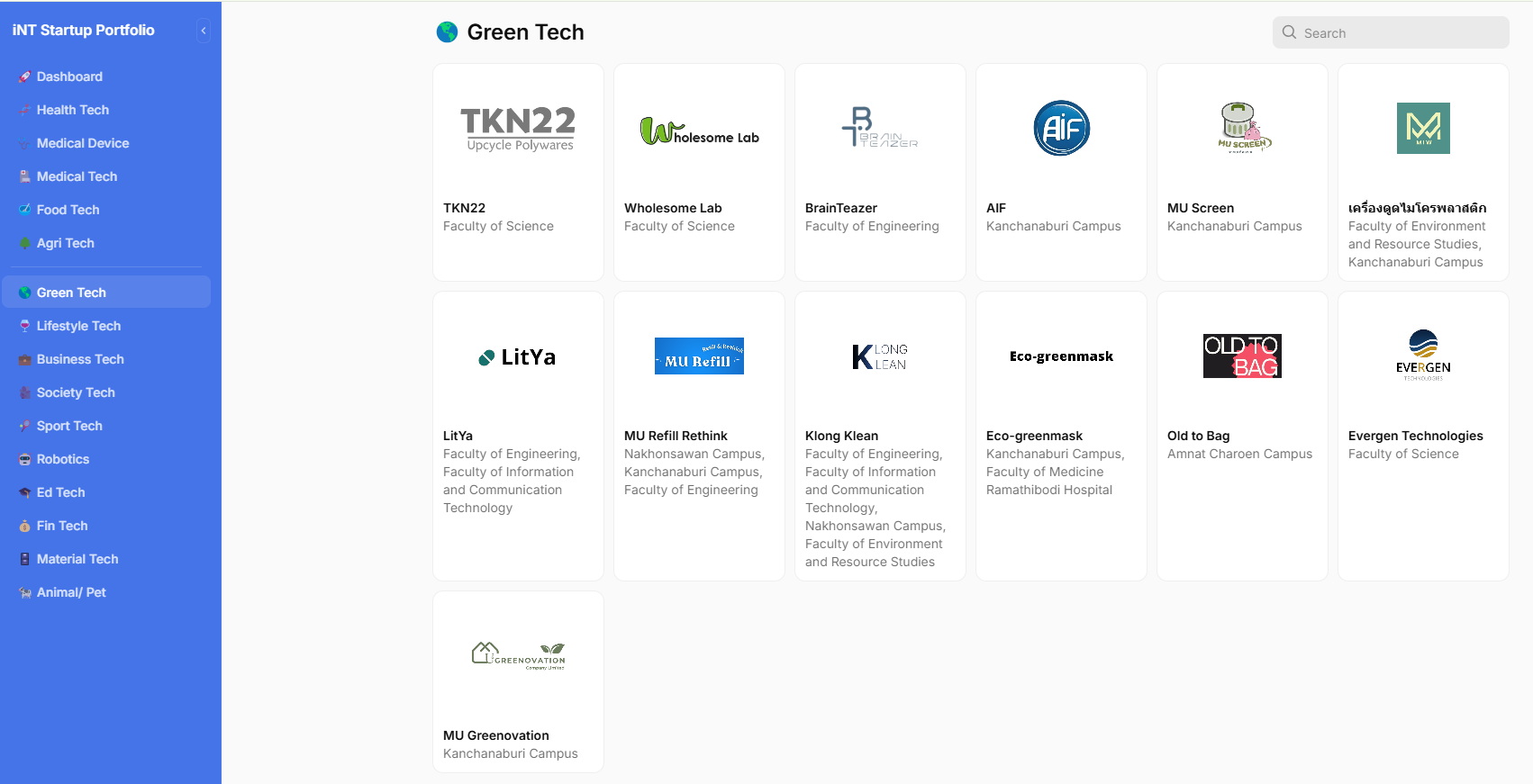 Green Technology (Green Tech) or Climate Tech refers to technologies and innovations designed to reduce greenhouse gas emissions, improve resource efficiency, and promote environmental sustainability. Mahidol University prioritizes the incubation of startups in these key areas: