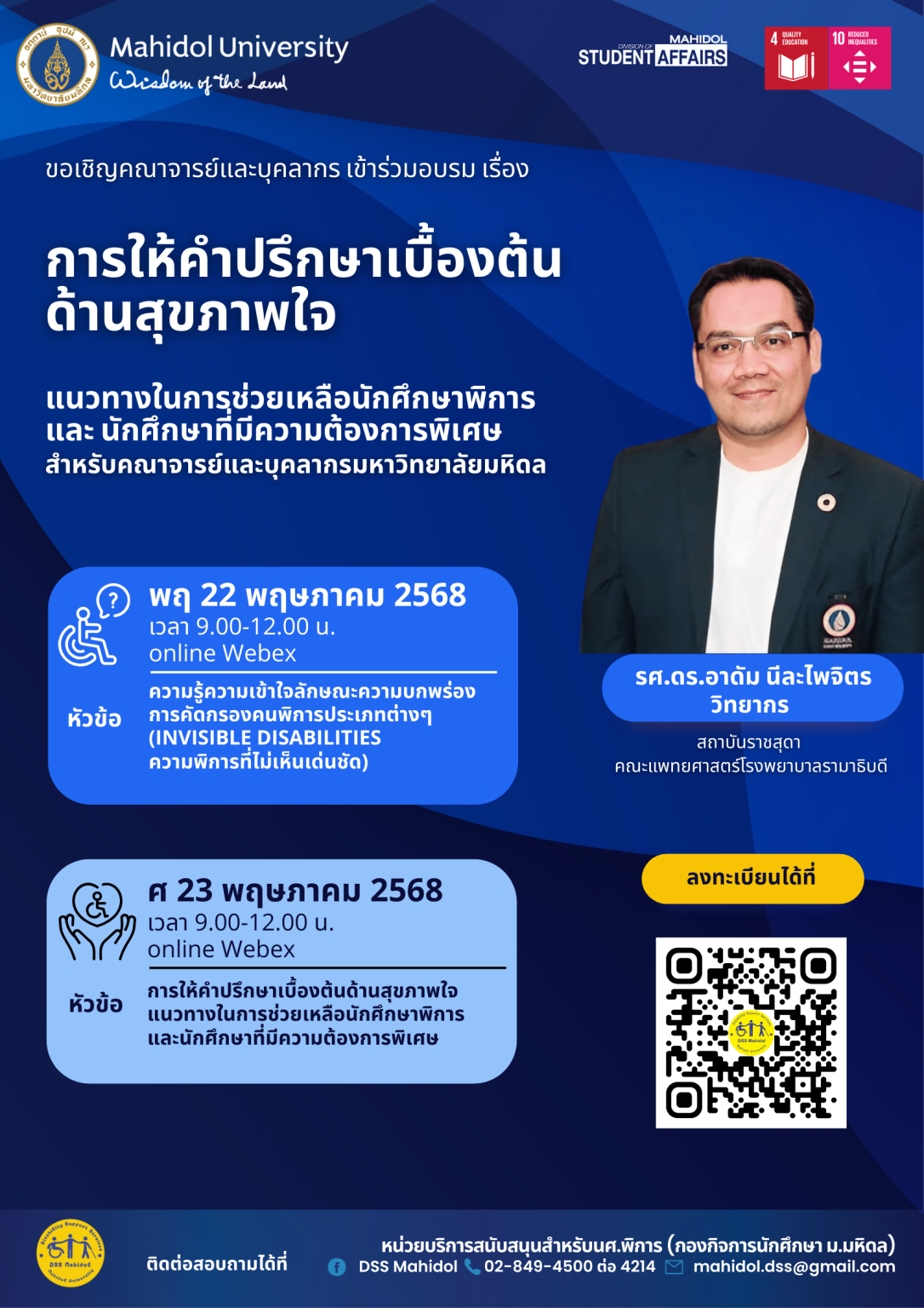 Through this policy, Mahidol University demonstrates its ongoing commitment to equity, accessibility, and inclusion, ensuring that all students — regardless of ability — have the opportunity to pursue higher education with dignity and full support.