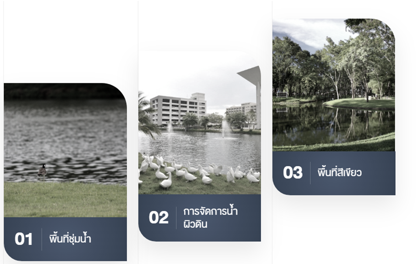 The Master Plan's core concept is "A promised place to live and learn with nature," with a strategic goal of being a "Green University" focused on preserving the original ecosystem alongside development. The university has therefore conserved two original natural wetlands that pre-date the campus: one north of the Institute for Population and Social Research (IPSR) and another south of the Siree Rukkachati Nature Park . These wetlands function not only as natural retention ponds but also as vital habitats for water resources, aquatic plants, and diverse aquatic species .