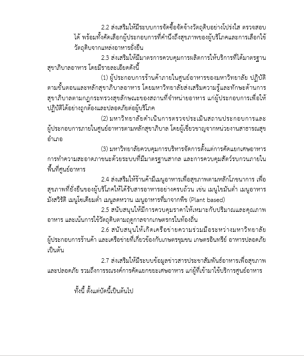 In addition, under the Policy on Promoting Food from Sustainable Sources with Nutritional Value and Hygienic Standards, Mahidol University recognizes the importance of clean, safe, and chemical-free food as a fundamental necessity for life. The University aims to ensure sustainable consumption and production patterns through the following measures: