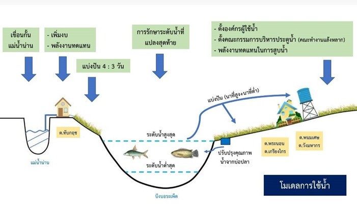 Looking ahead to 2024–2025, the initiative aims to strengthen local livelihoods through eco-friendly farming practices such as alternate wet–dry rice cultivation and the use of aquatic weed-based fertilizer to boost income and reduce greenhouse gas emissions. This inclusive, research-based, and democratic approach—endorsed at the policy level—earned the project a “Very Good” Award in the 2024 Democracy Innovation Contest (Community and Organization category) and is now considered a model for sustainable and cooperative water management across Thailand.