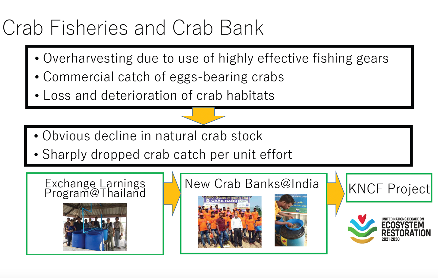 From 2022 to 2025, WMRTC has been implementing the “Establishing a Collaborative Network for Mangrove Conservation and a Model Area for Blue Swimming Crab and Mud Crab Conservation in the Bay of Bengal” project, supported by the Keidanren Nature Conservation Fund (KNCF). This initiative brings together eight coastal nations through the Bay of Bengal Wetland Partnership (BoBWeT) to jointly address overfishing, mangrove loss, pollution, and climate change. By working with local communities and regional partners, WMRTC promotes crab bank networks, mangrove restoration, and sustainable aquaculture, preserving the natural balance of coastal ecosystems while advancing UN SDG 14: Life Below Water.