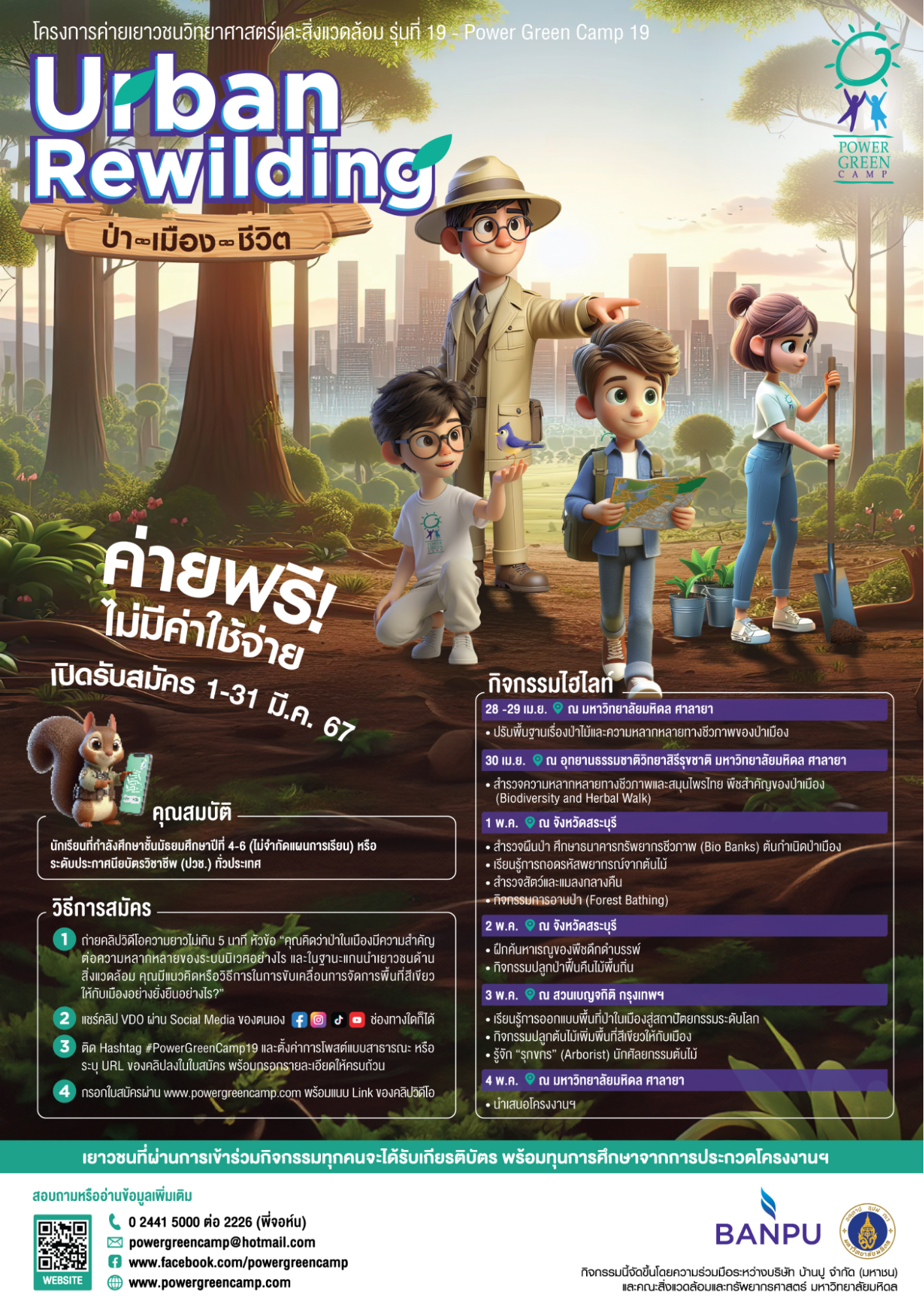 The "Power Green Camp" organized by the Faculty of Environment and Resource Studies in collaboration with the private sector. This is an educational program open to youth (a national community) from across Thailand to build youth environmental leaders. Since its inception, the program has had a total of 1,159 participants.