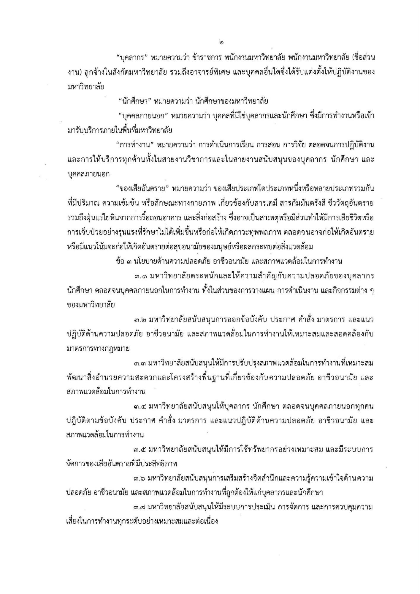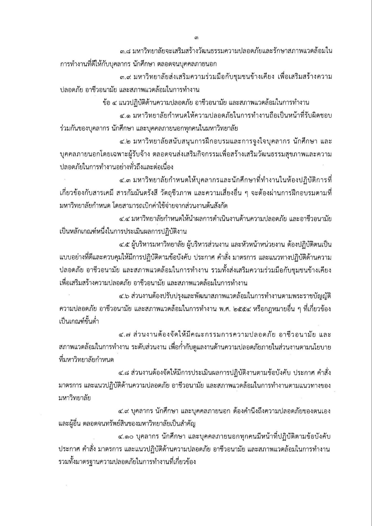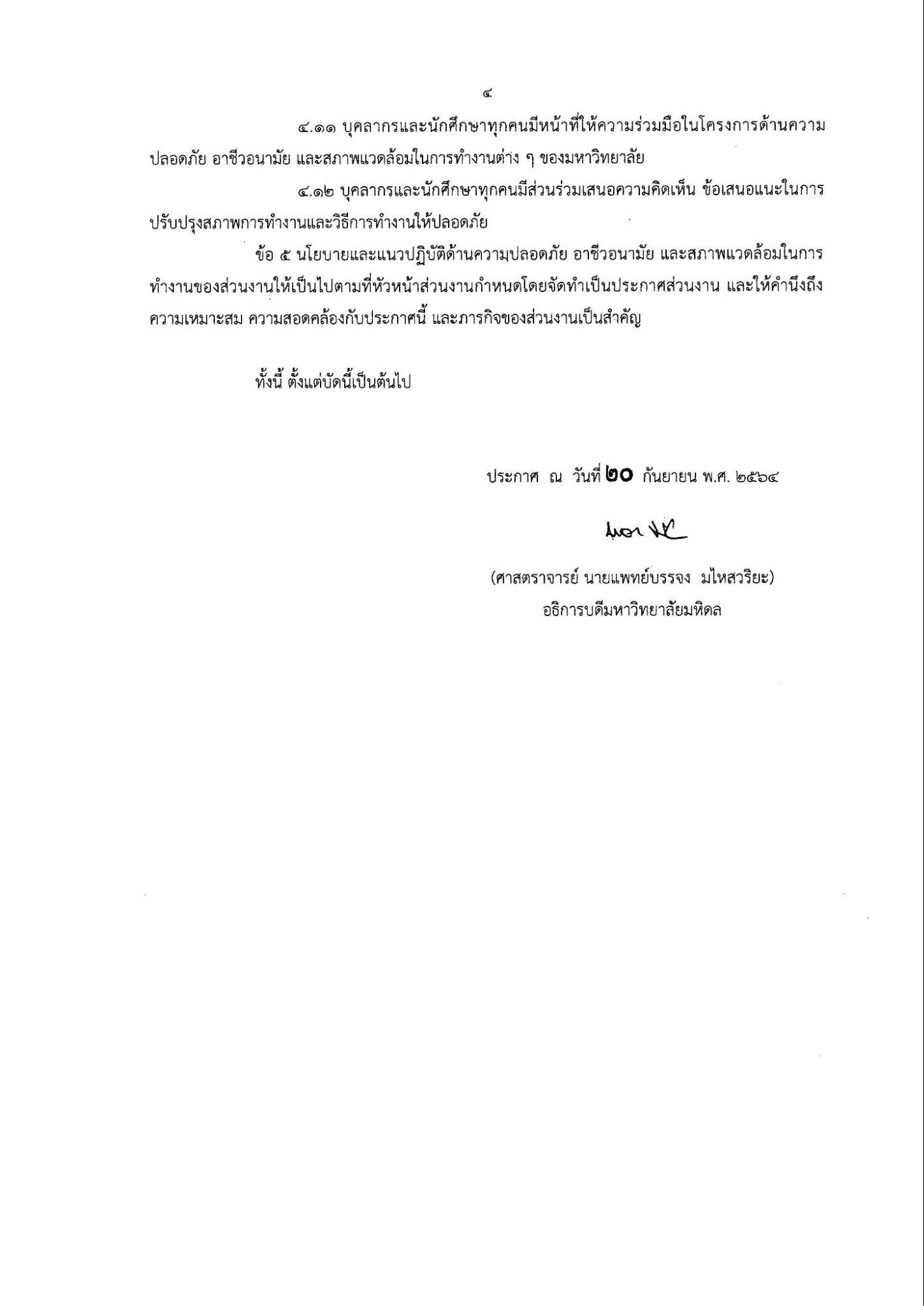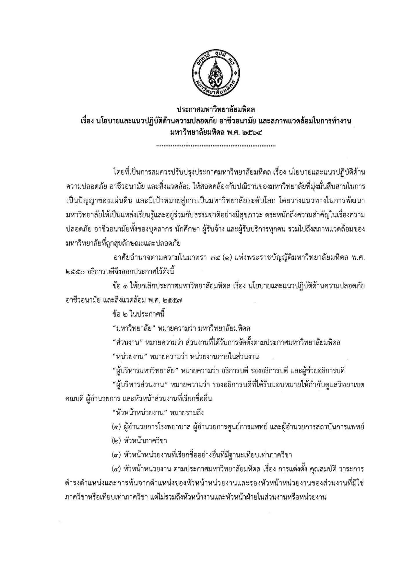 Policy Mahidol University's hazardous waste management operates under a comprehensive policy framework. The overarching framework is the "Mahidol University Announcement on the Policy and Guidelines on Safety, Occupational Health, and Work Environment B.E. 2564 (2021)."