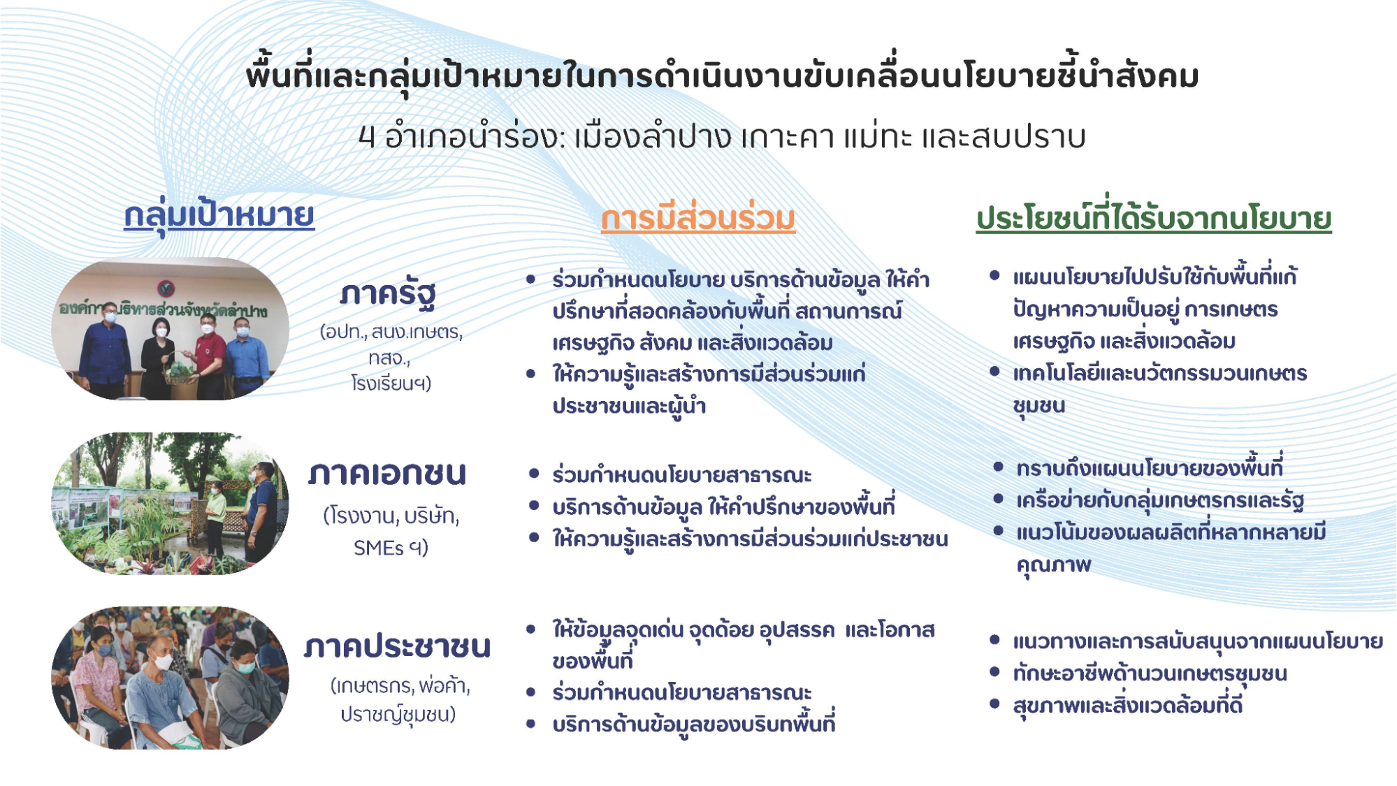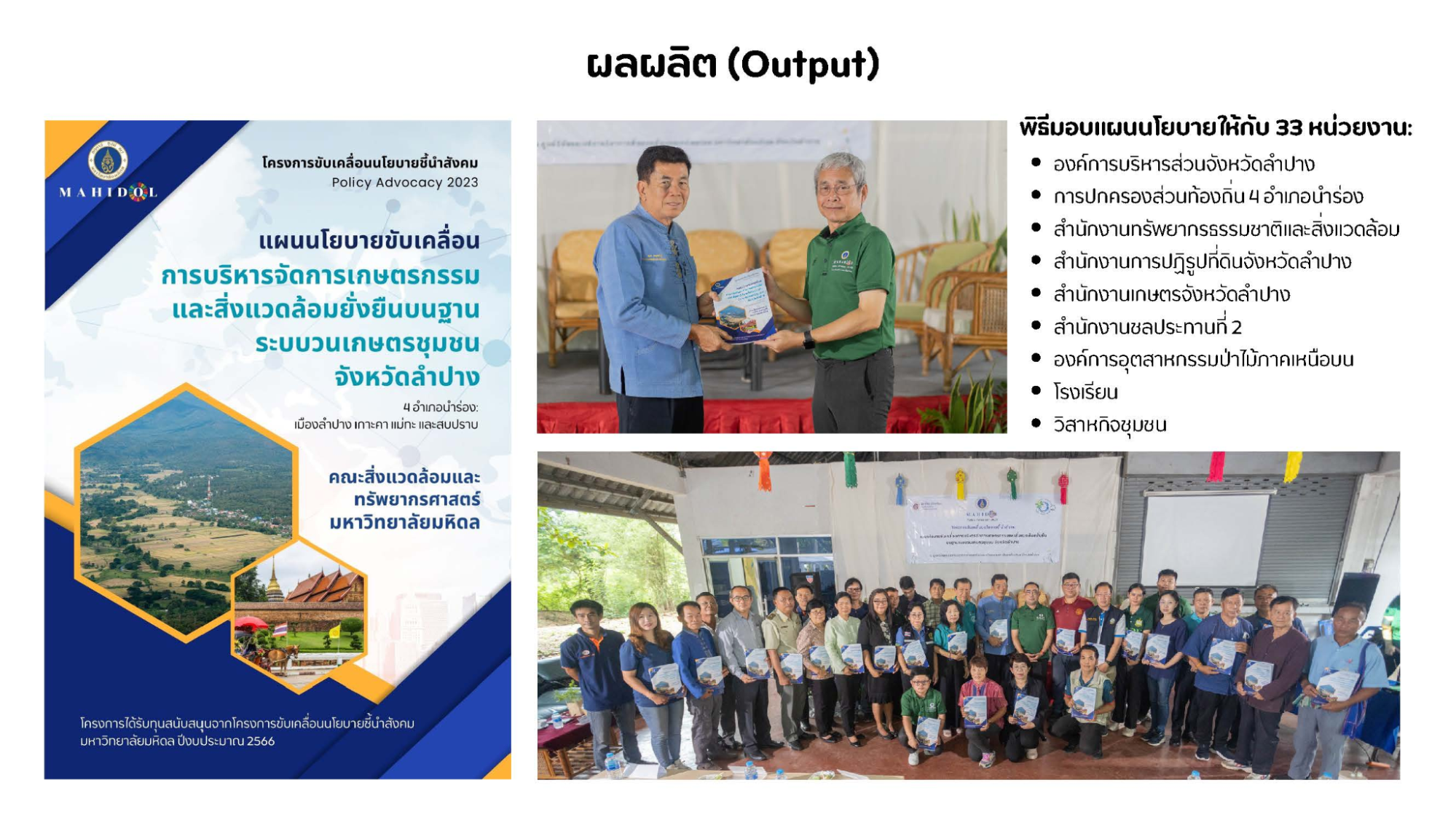 Community Agroforestry Policy Outreach Project The university also implements the "Policy Plan for Sustainable Agriculture and Environmental Management based on Community Agroforestry" in Lampang Province. This is an educational outreach program focused on the "sustainable management of land for agriculture."