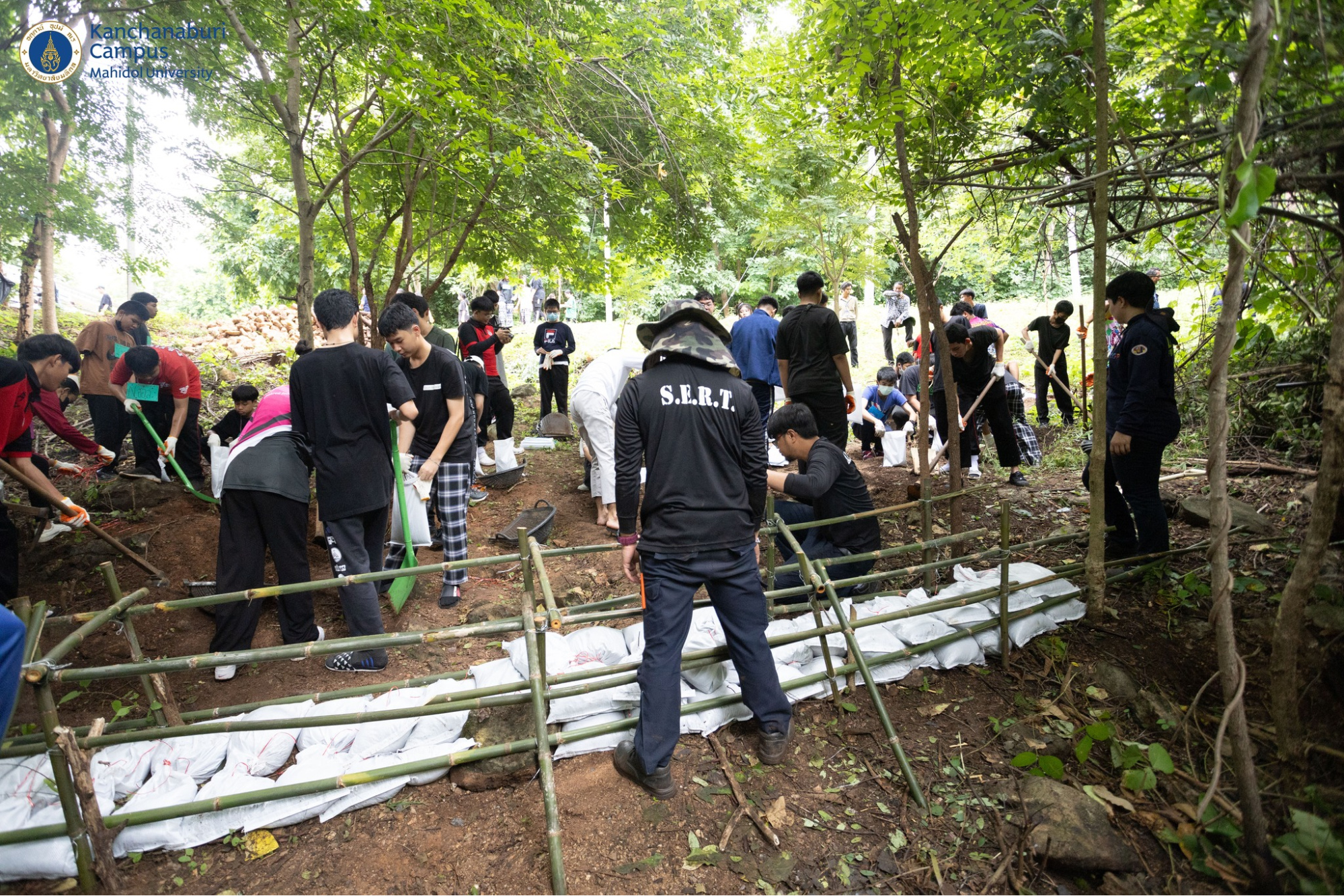 Direct Conservation Action and Events for Sustainable Land Use Mahidol University Kanchanaburi Campus implements the "Check Dam Project," a long-term initiative that directly promotes the conservation and sustainable utilisation of the land. The project addresses severe soil erosion and moisture loss in the campus's foothill forests.