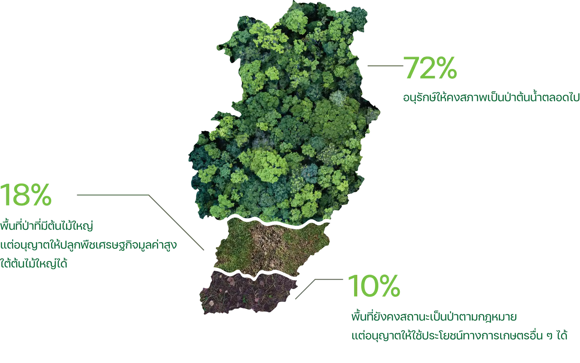 This is a direct action to extend plant biodiversity through a land allocation strategy (72:18:10). This strategy mandates reforestation (100 trees/rai) to restore and extend the forest ecosystem in 18% of the target area, while simultaneously addressing land rights and poverty. It promotes sustainable agroforestry (e.g., high-value medicinal plants) under the restored forest canopy, balancing the extension of the forest ecosystem with sustainable community livelihoods.