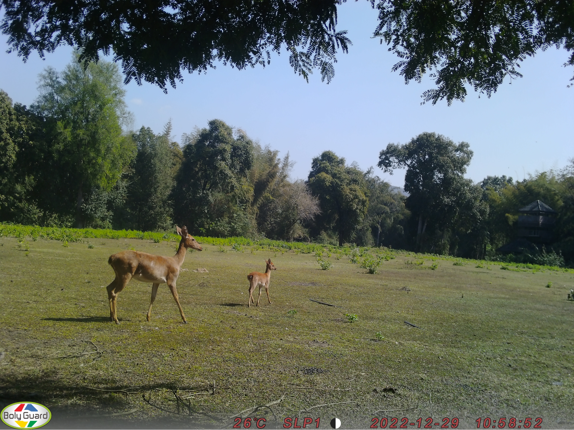 This project is a direct action to maintain animal biodiversity by systematically monitoring the reintroduced Eld's Deer (prey) population using methodologies like Camera Traps, Occupancy analysis, and population structure studies. The research confirms the project's success, identifying at least 76 individuals with a healthy male-to-female ratio (1:1.33).