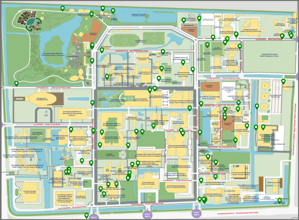 Map Showing the Installation Sites of Digital Water Meters at Mahidol University, Salaya Campus