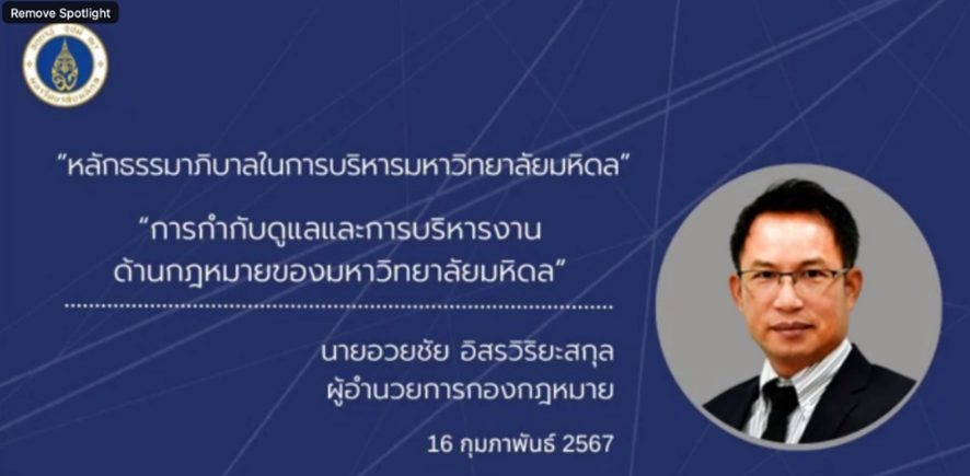 This event exemplifies the university's commitment to providing targeted education and outreach to policy- and lawmakers. By bridging the gap between research and policy, Mahidol University actively contributes to building strong, evidence-based institutions.
