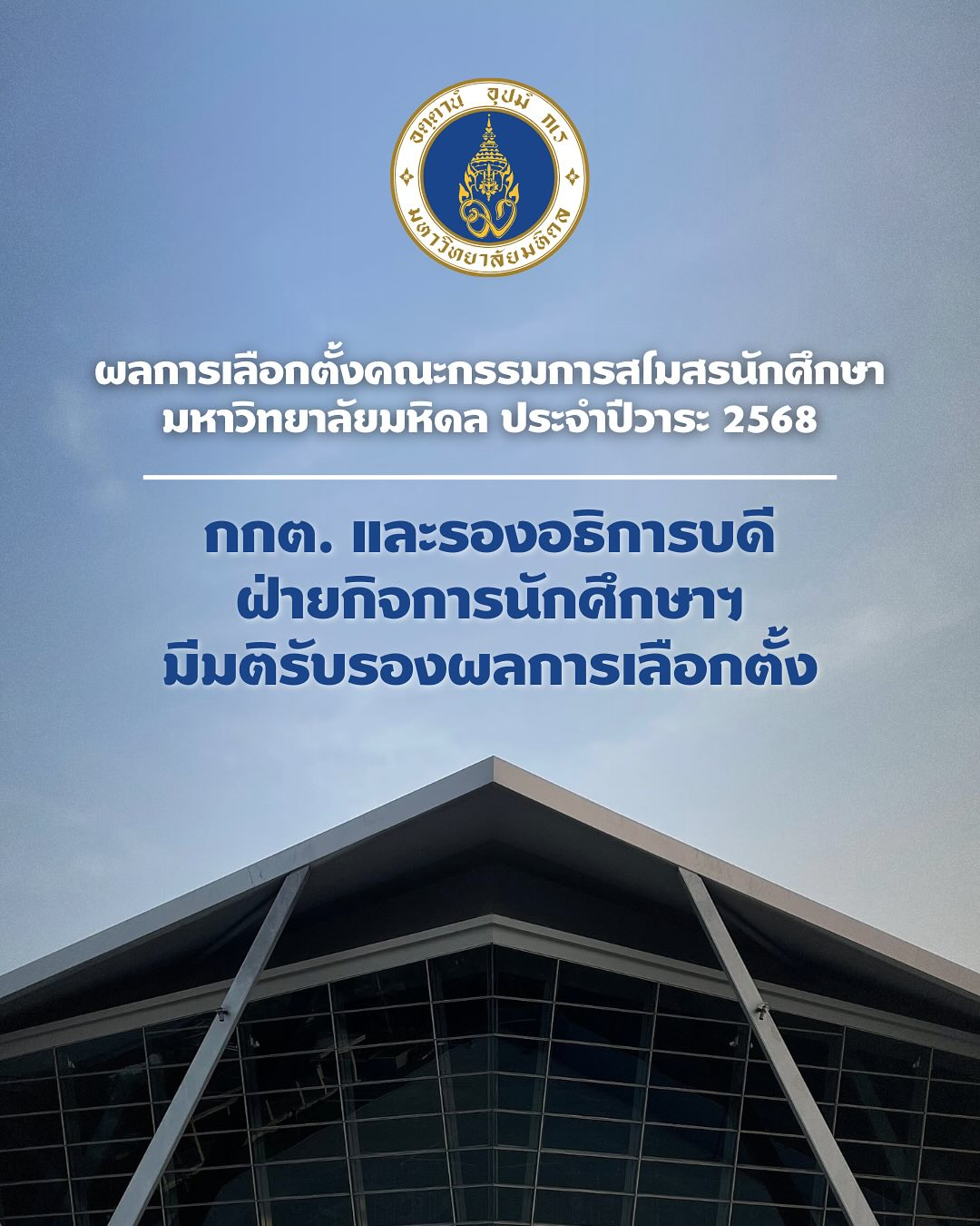 The university congratulates the newly elected committee and expresses appreciation to all students who participated in the election process, reflecting the spirit of democracy, unity, and active student engagement within the Mahidol community.