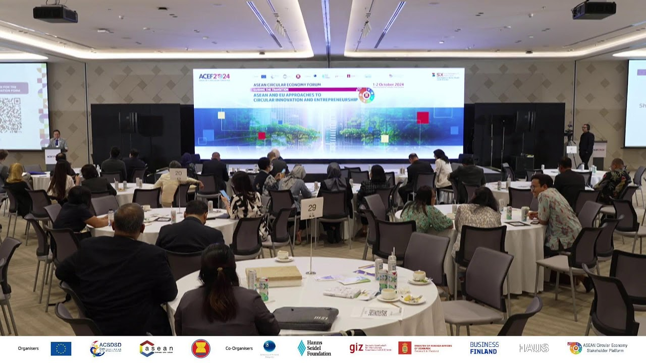 In October 2024, the ASEAN Centre for Sustainable Development Studies and Dialogue (ACSDSD) at Mahidol University, in collaboration with the Hanns Seidel Foundation and the Embassy of Finland in Thailand under the Team Europe Initiative (TEI), with support from the ASEAN Secretariat, the Delegation of the European Union to ASEAN, and other European Union partners, organized the ASEAN Circular Economy Forum 2024 under the theme “Guiding the Transition: ASEAN and EU Policy and Business Approaches to Circular Innovation and Entrepreneurship.” The event was held at the Queen Sirikit National Convention Center in Bangkok.