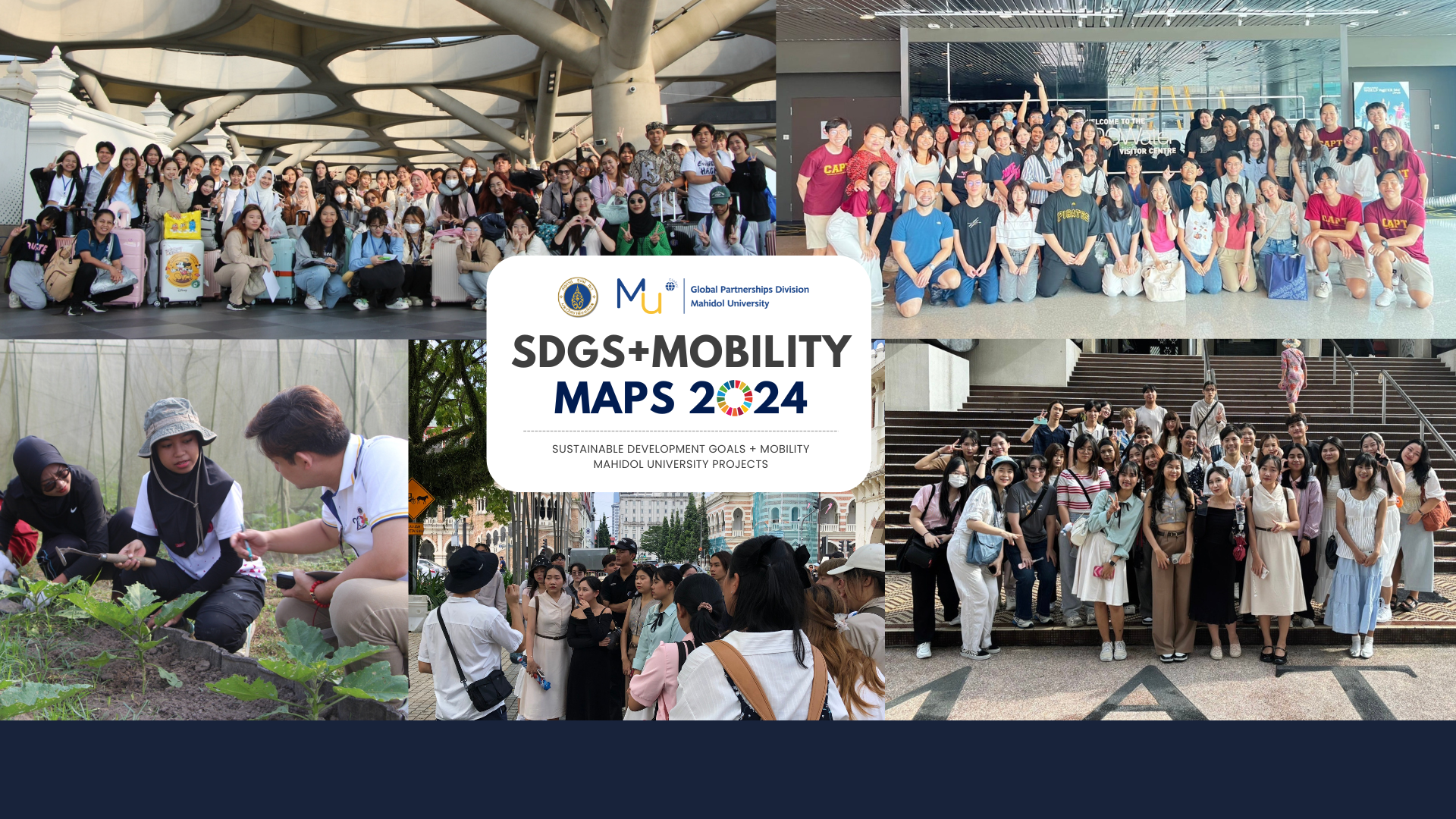In a world constantly experiencing drastic changes in the climate and economy, the Sustainable Development Goals (SDGs) hold increasing significance as they aim to protect the environment and improve living conditions for all. These goals are internationally recognized as the blueprint for global development, and Thailand is proud to be a part of this global mission. As an educational institution, Mahidol University (MU) has a vital role to play in raising awareness of the SDGs amongst our students and involving them in the nationwide and global attainment of the goals. To this end, MU has conceptualized the Sustainable Development Goals + Mobility Mahidol University Projects: SDGs + Mobility MaPs.