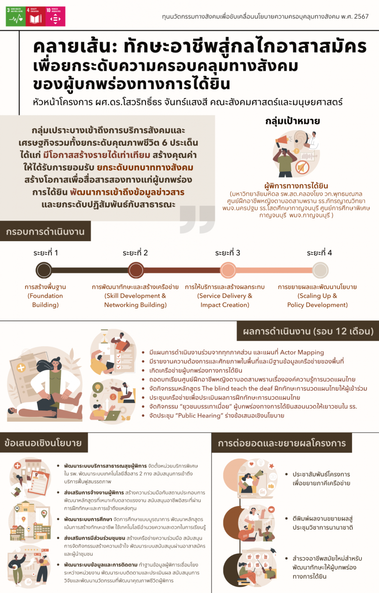 Mahidol University has set its goals to drive the Sustainable Development Goals (SDGs) by fostering a more inclusive society that enhances opportunities for vulnerable groups to access social and economic services, thereby improving their quality of life.