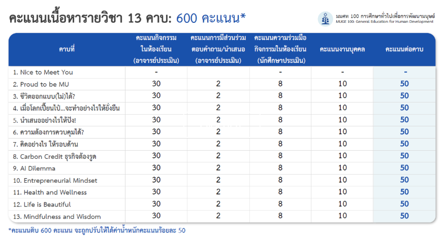 Mahidol University offers the course "General Education for Human Development (MUGE 100)" to align with the Sustainable Development Goals (SDGs). This course emphasizes fostering social responsibility, benefiting the community, and developing teamwork and communication skills.